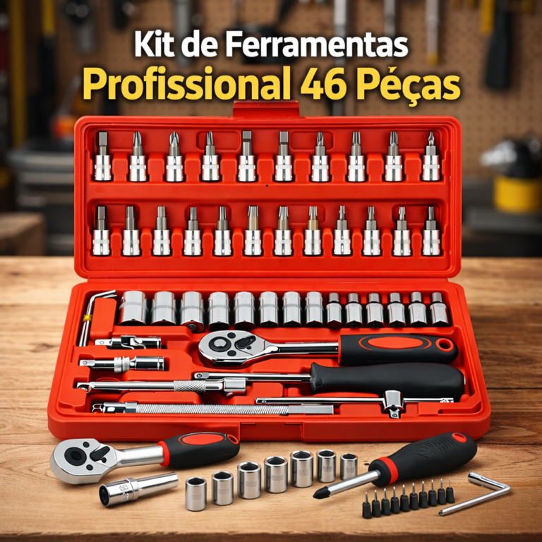 Resolva qualquer imprevisto com o Kit Profissional de 46 Peças. Praticidade, organização e resistência em uma única maleta.
